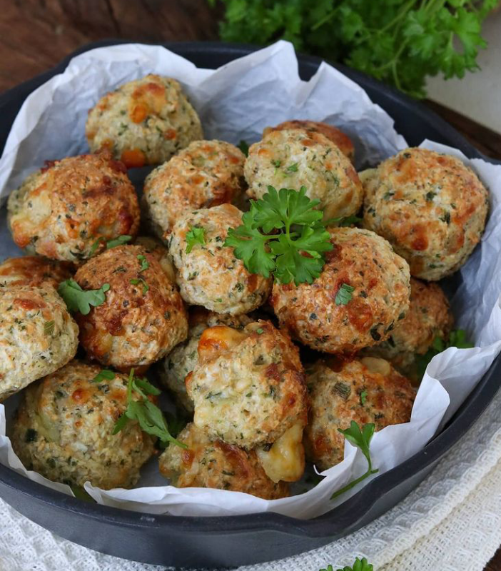 Alle Zutaten vermengen, ca. 20 Minuten quellen lassen, walnussgroße Kugeln formen, auf ein Backblech mit Backpapier legen, Umluft 180Grad ca. 20 Minuten backen.